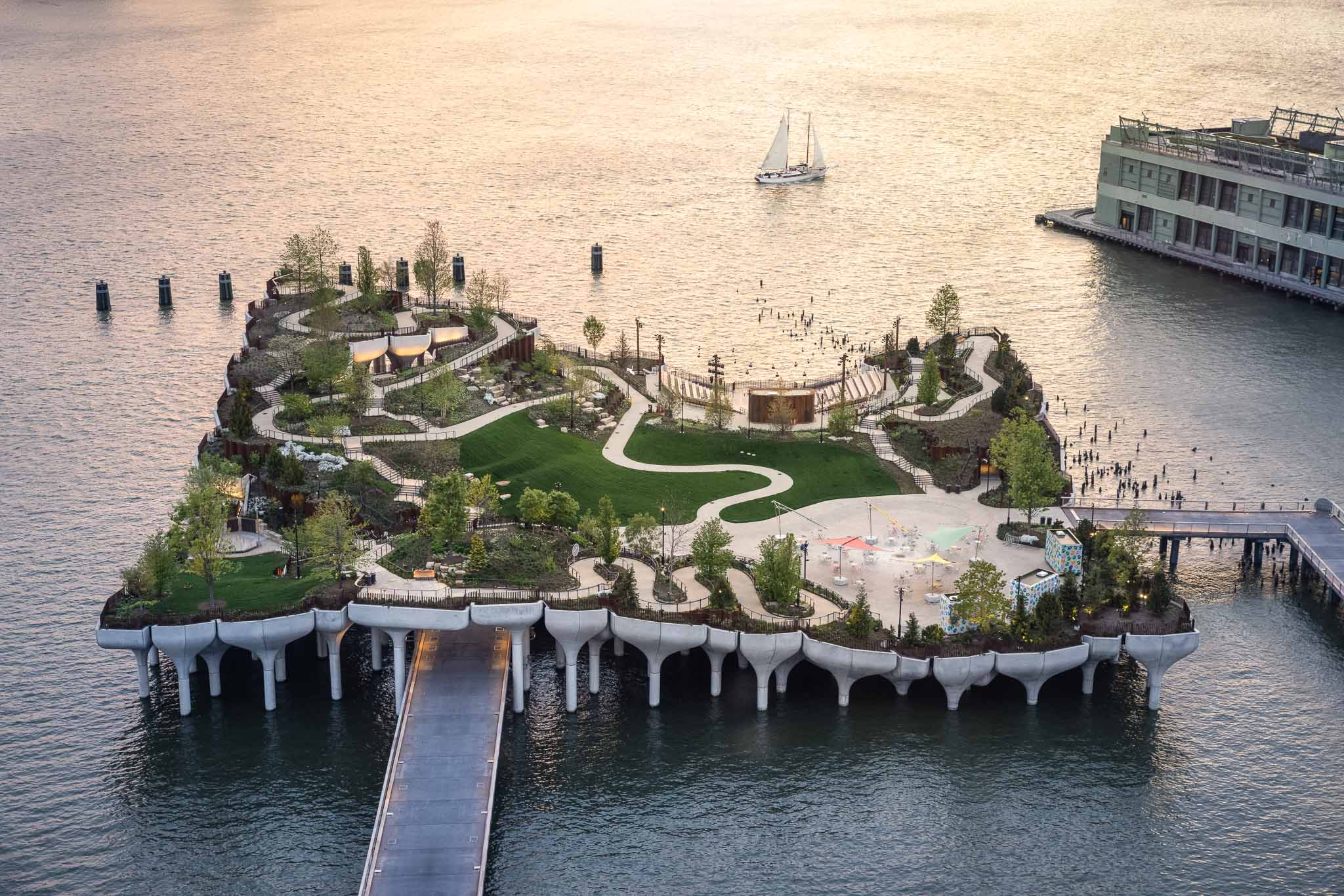 Little Island is een nieuw park op palen in New York dat gebouwd is in de rivier de Hudson. Je kunt Little Island makkelijk bereiken vanuit de wijk Chelsea, vanwaar je naar Pier 55 kunt lopen waar het park ligt. Het is een park dat op 280 betonnen palen vindt en door de vorm van de bouw, ziet Little Island er futuristisch uit. Het is een prachtig park geworden met meer dan 35 verschillende soorten bomen en vele struiken, een fijn stukje groen in New York. Op het eiland zijn een paar uitkijkpunten gecreëerd vanwaar je prachtig uitzicht hebt op Manhattan. Je kunt er wandelen, uitrusten op een van de grasvelden of een van de evenementen bijwonen waarvoor er twee podia aangelegd zijn.