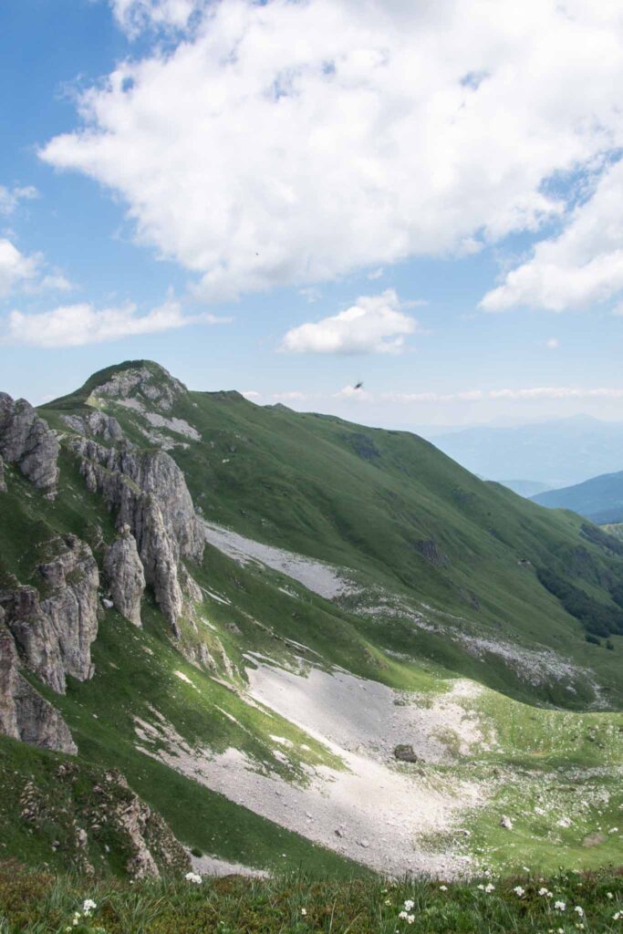 Een relatief nieuwe ‘attractie’ in Kolasin is het ski-center. In de zomermaanden een goede plek om te wandelen. Voordeel is dat de kabelbaan je naar 2000 meter brengt en je vanaf daar kunt gaan wandelen. Er zijn geen routes uitgestippeld, maar wanneer je de app maps.me gebruikt kun je de route enigszins volgen. Je kunt de toren die overal bovenuit steekt als herkenningspunt gebruiken. Ik koos ervoor om de lange route te maken, die grotendeels redelijk vlak is en je langs het prachtige meer Pesica Jezero brengt. Er zitten twee stukken in waar je even moet klimmen, maar de route is prachtig. Je ziet onderweg de contouren van Biogradska National Park.