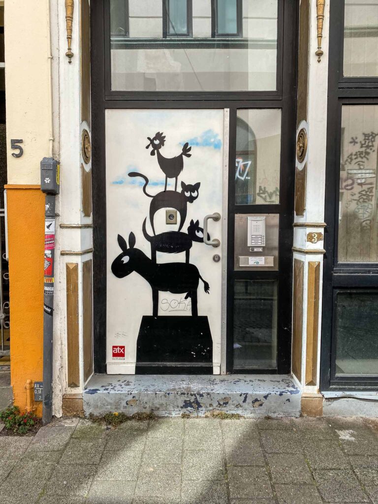 Het voelt een beetje raar om naar een soort putdeksel te kijken met een gat erin. Maar gooi je er in een muntstuk in (maakt niet uit wat), dan komt er een geluid uit de put. Het geluid is van een van de dieren van de Bremer Stadsmuzikanten. De muntstukken die er ingegooid worden gaan naar het goede doel.