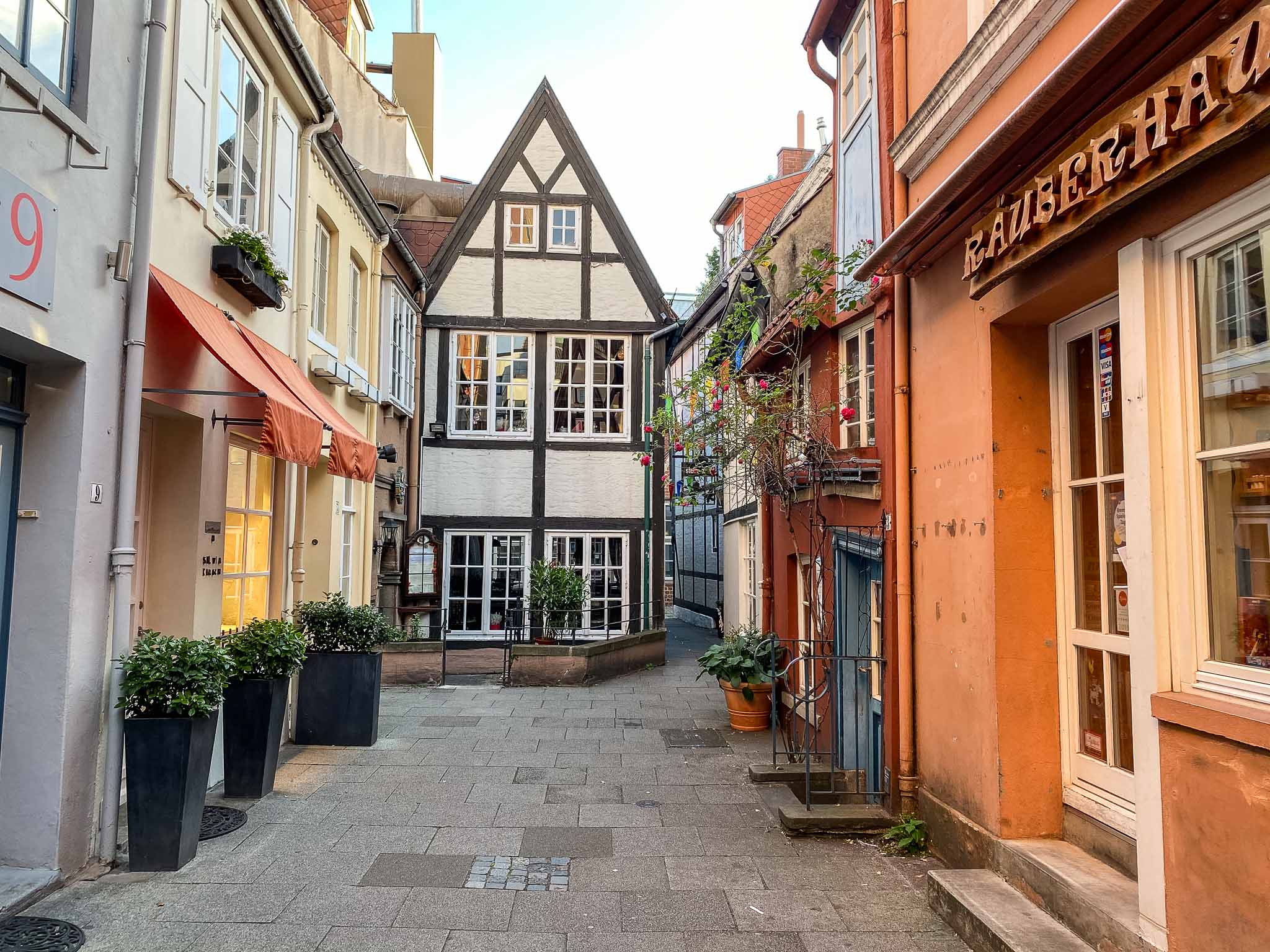 Als er een stukje Bremen is dat je niet mag overslaan, dan is dat de wijk Schnoor, een van de leukste wijken in Bremen. Het ligt net even buiten de Altstad, maar nog wel binnen de stadsgrachten. Het is de oudste wijk van Bremen en dat is te zien. In de kleine en smalle straten vind je nog originele vakwerkhuizen uit de 15e en 16e eeuw. In de oude panden bevinden zich kleine winkels, kunstgalerijen, cafes en restaurants.