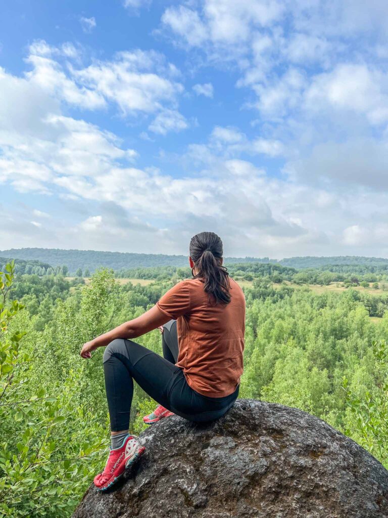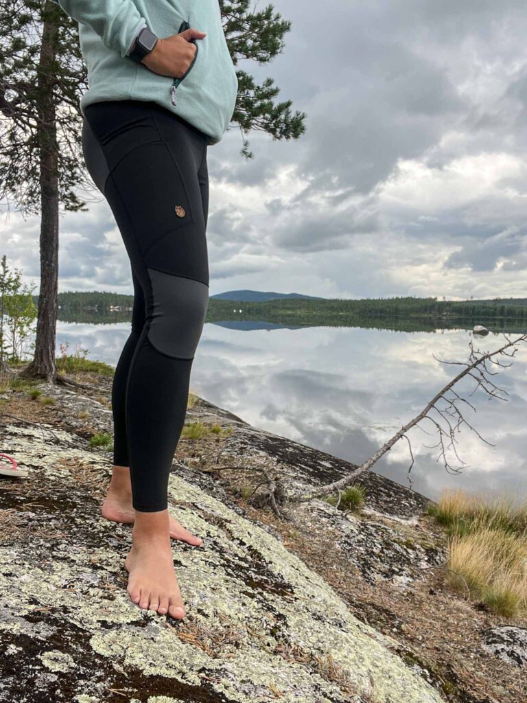 Tijdens het wandelen merk ik dat ik een voorkeur heb voor een legging. Vaak zijn ze toch net wat soepeler dan een broek. Wanneer het weer slechter is of het kouder is, pak ik toch liever mijn Fjällräven trousers. Die geeft meer comfort en is redelijk waterdicht. Ik denk dat het voor iedereen verschillend is wat fijn zit tijdens het wandelen. Ik vind het fijn om te switchen waar mogelijk. Met droog weer een redelijke temperaturen kies ik voor een legging, is het kouder en natter, dan pak ik de broek.