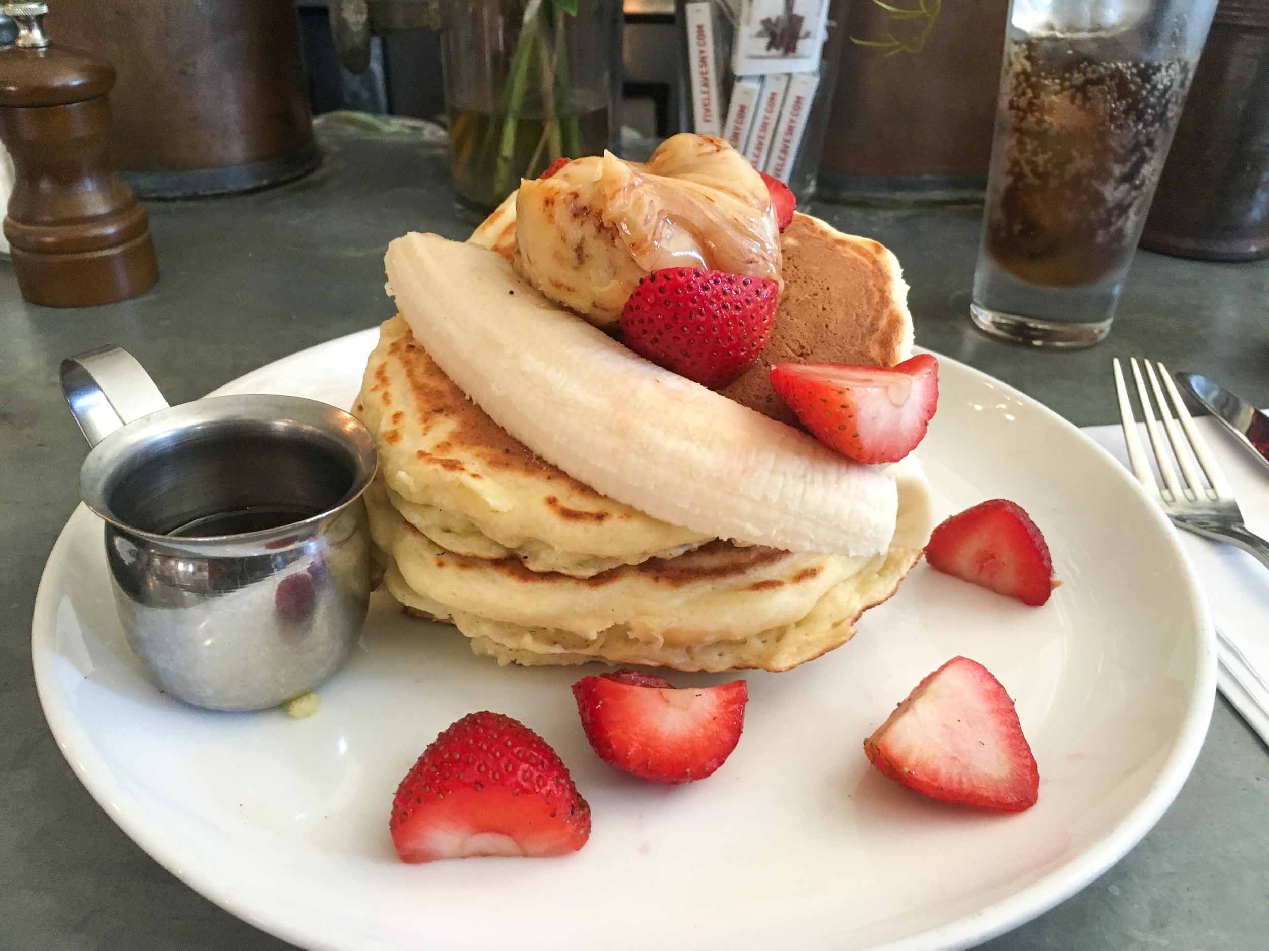 Als je zin hebt in een goede stapel pannenkoeken, dan ben je bij Five Leaves aan het juiste adres. In Williamsburg vind je Five Leaves aan een drukke kruising. Het is een populaire plek om te lunchen en het kan dus ook zijn dat je in de rij moet staan om te kunnen eten. Ik had geluk, want ik was alleen en kon daardoor aan de bar plaatsnemen. Ik kreeg een grote stapel pancakes en had dan ook moeite om die allemaal op te krijgen, maar lekker was het zeker!