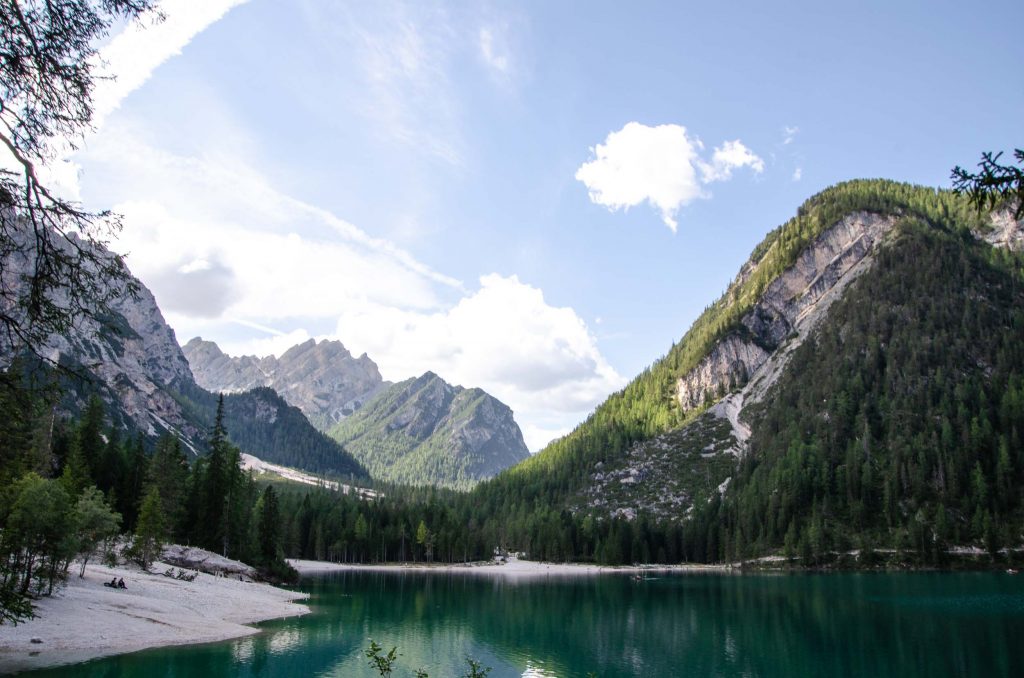 Ik had nog wel wat langer in dit plekje willen blijven, maar ook de bestemming hierna belooft veel goeds. Toblach, of ook wel Dobbiaco, ligt 30 kilometer hoger en nog steeds midden tussen de bergen. Alsnog een perfecte uitvalsbasis om de Dolomieten en de Alpen kant van de regio te ontdekken. Na een prachtige busrit dwars door de bergen kom ik aan in Toblach, weer een heel ander bergdorpje dan Cortina. Na het wegbrengen van mijn spullen pak ik direct de shuttle naar Lago di Braies, het enorm populaire bergmeer. Ik kom rond een uurtje of twee aan en merk dat het nog redelijk druk is. Ik wandel rond het meer en maak foto’s, vanaf iedere kant is het prachtig. Hoe later op de middag, hoe rustiger het wordt. Hoewel het een toeristische plek is, kan ik een bezoek aan Lago di Braies zeker aanraden.