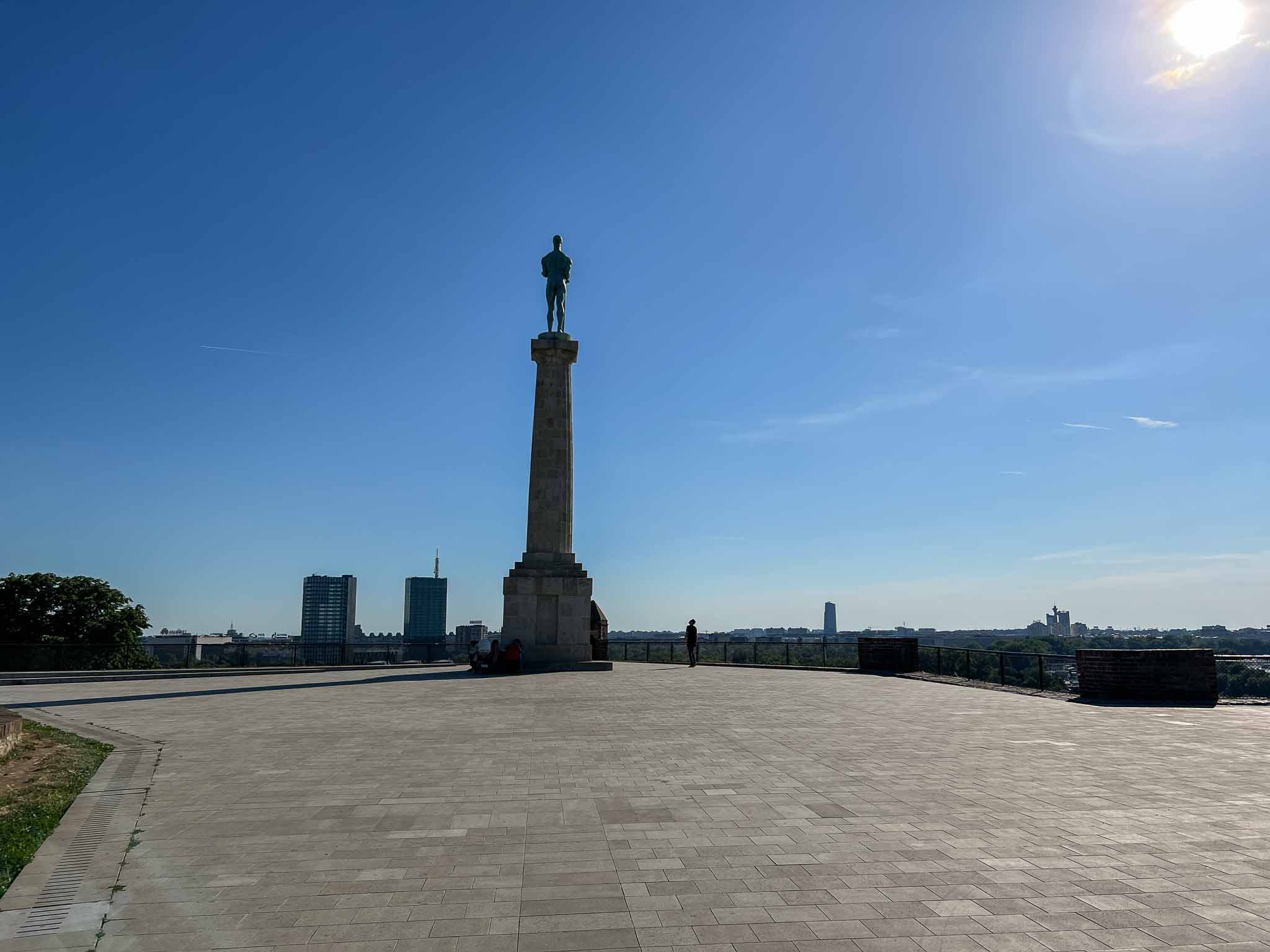 Een van de belangrijkste monumenten in Belgrado. Het Victor Monument bestaat uit een naakte man op een veertien meter hoge sokkel. Hij heeft in zijn rechterhand een zwaard, het symbool van de oorlog en in zijn linkerhand een valk, het symbool van vrede. Het beeld werd tijdens de Tweede Wereldoorlog opgeslagen, waardoor hij ongeschonden de oorlog doorkwam. Na de oorlog werd het kiezen van een locatie voor het beeld iets lastiger. Sommige mensen vonden een naakte man in het centrum niet kunnen, dus werd uiteindelijk gekozen voor het Fort van Belgrado. Hij kijkt uit op de Sava, de delen die pas bevrijd waren van het koninkrijk Joegoslavië en symboliseert de overwinning in de Eerste Wereldoorlog.