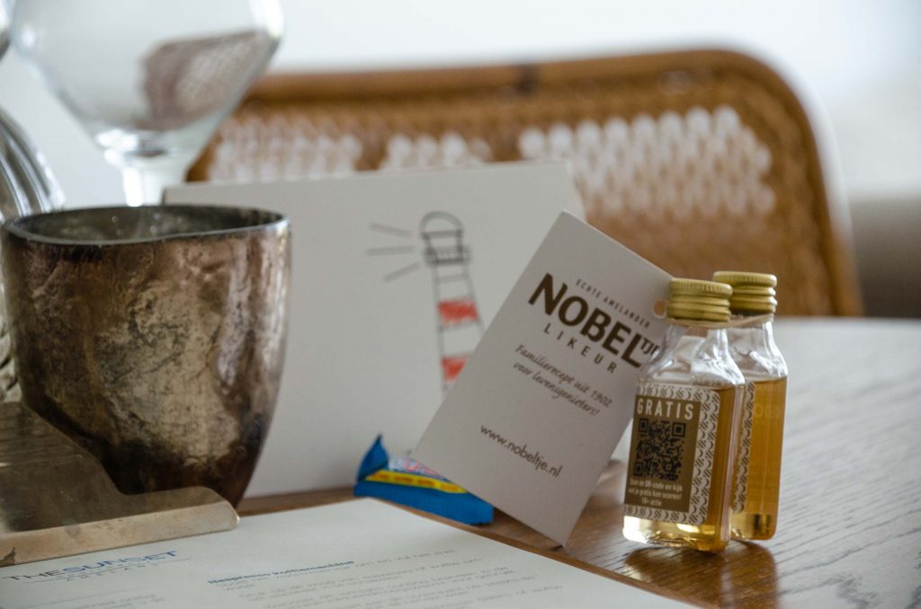 Een goede reden om even bij te komen in Ballum is het restaurant en slijterij Nobeltje, het drankje van Ameland. Waar we in eerste instantie belanden op het terras voor een warme chocolademelk met Nobel, konden we het niet laten om ook de slijterij binnen te lopen. Enthousiast word je ontvangen en mag je direct allerlei soorten Nobeltjes proberen. Niet alleen het standaard Nobeltje is er, inmiddels ook kun je een variant combineren met Gin. Je mag werkelijk alles proberen en vaak kan men het niet laten om met een fles naar buiten te gaan.