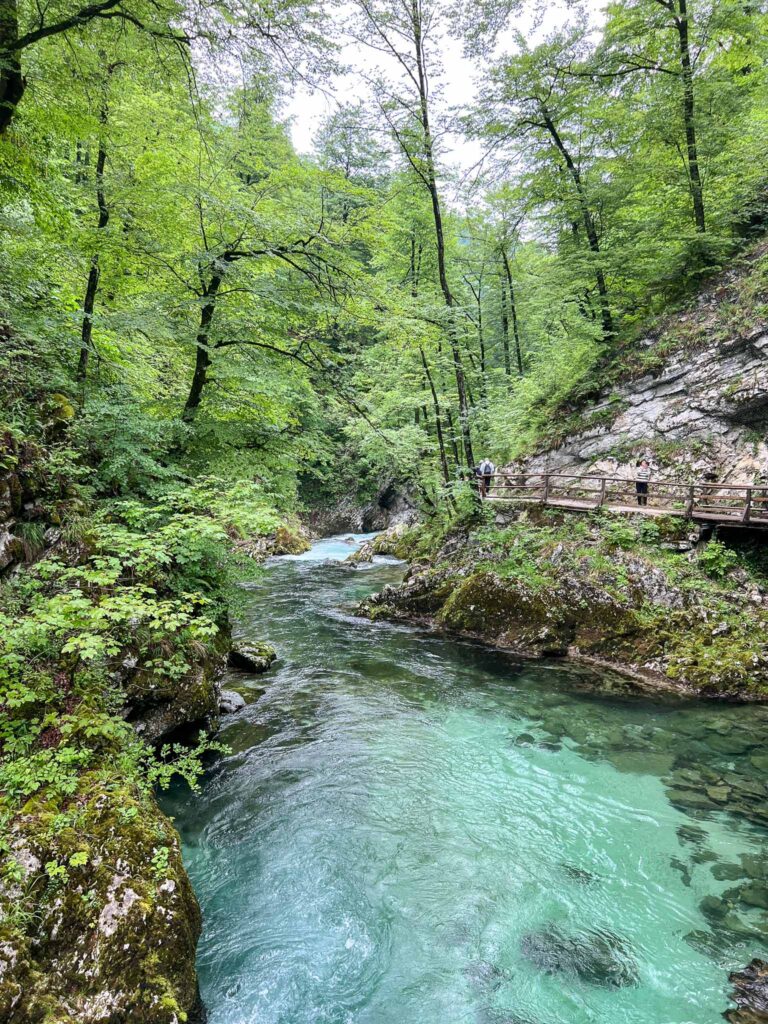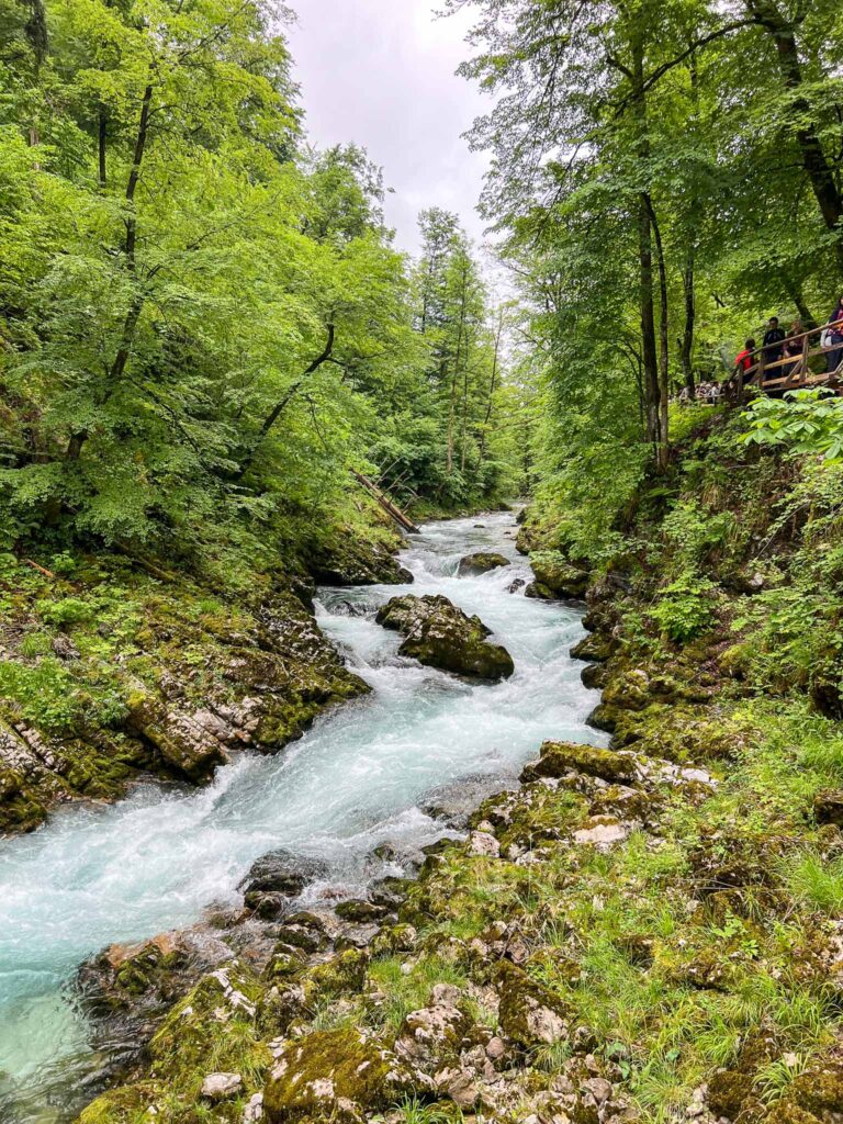 Net buiten Bled ligt deze kloof, de Vintgar Gorge. Ook hier valt de kleur van het water dat door de kloof stroomt direct op. Her en der steek je de rivier over en wandel je langs de rotswanden van de Vintgar Gorge. De route is one-way, je loopt via een andere route weer terug naar de parkeerplaats.