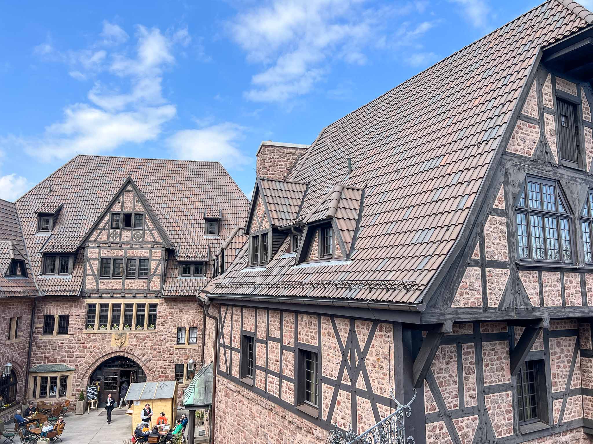 In de sferen blijven? Dat kan! Net naast het kasteel vind je Romantik Hotel auf der Wartburg, een vijfsterrenhotel dat prachtige kamers biedt. Je kunt hier ook een hapje eten.