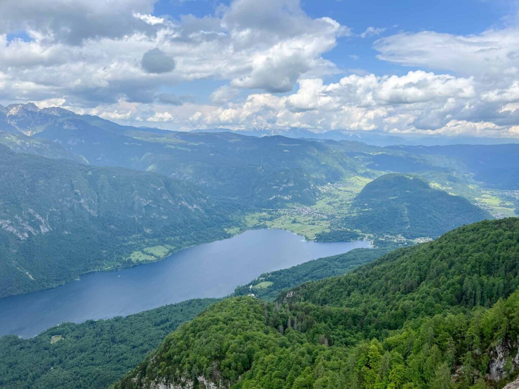 Daarna vervolgde ik mijn weg naar Velika Osojnica, helaas kon ik hier alleen de groene heuvels rondom het meer zien, niet het meer zelf. Persoonlijk zou ik deze dan ook overslaan. Daarna wandelde ik richting Ojstrica, dat zich op 610 meter hoogte bevindt. Vanaf hier vond ik het uitzicht op het meer het mooist, maar misschien lag dat ook aan het feit dat de zon doorbrak waardoor het meer nog mooier werd.